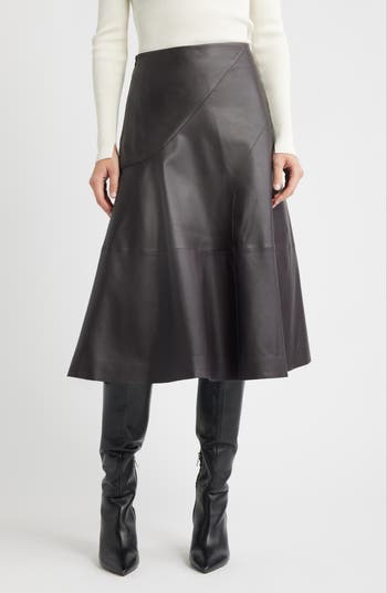 Complete your look with the modern edge of this smooth leather skirt in a classic A-line silhouette.