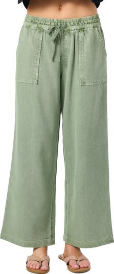 Cut from soft yet sturdy cotton twill, these wide-leg pants are kicky and casual with a drawstring-cinched waist and frayed hems for added laid-back appeal.