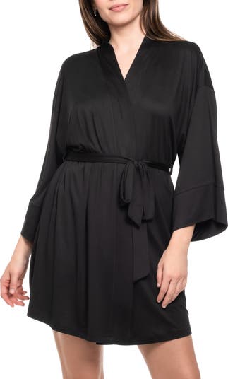 Make your morning even better in this wrap fashioned from a silky satin that feels luxurious against your skin.