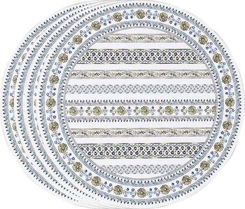 Inspired by the tranquil colors and folkloric florals of the Spanish countryside, these cork-bottomed placemats will elegantly enhance your tablescape. A laminated surface makes cleanup a breeze.