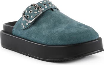 A well-cushioned footbed enhances the everyday comfort of a classic clog updated with a studded buckle strap.