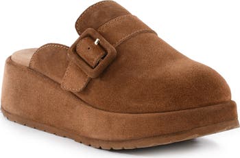 A platform sole puts a retro spin on this smooth suede clog complete with comfort-enhancing OrthoLite® cushioning.