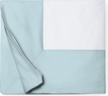 An appliquéd sateen border lends fresh, lovely color to a minimalist duvet cover tailored with clean, crisp knife-edged seams.