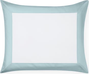 An appliquéd sateen border lends fresh, lovely color to a minimalist sham tailored with clean, crisp knife-edged seams.