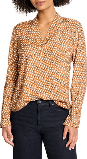 A lively dot print covers this polished crepe top that's perfect for work or play with its surplice neckline and flared-cuff long sleeves.