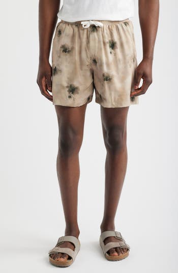 Festival-ready looks are complete with these drawstring-waist shorts covered in an artisanal watercolor print overlaid with shadowy florals.