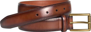 A burnished finish gives a frame of dimension to this smooth leather belt.