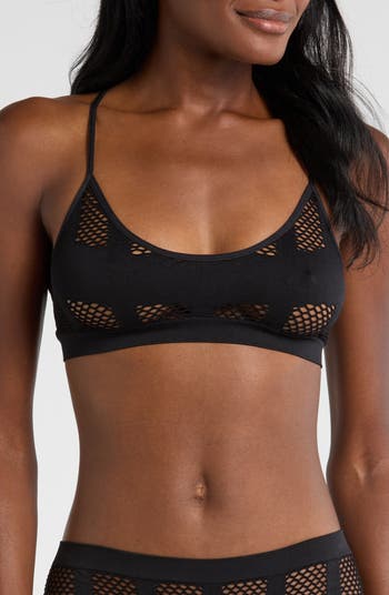 Get a smooth, line-free look without sacrificing comfort in this stretchy bralette crafted with fishnet panels.