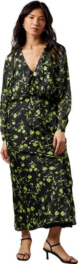 Make a statement at your next formal gathering with this captivating Shadow Stripe Batwing Plunge Neck Midi Dress from Warehouse. The distinctive shadow stripe texture combined with the floral pattern creates a mesmerising visual effect that commands attention. The plunging neckline presents a confident aesthetic whilst the batwing sleeves provide a relaxed yet refined drape.