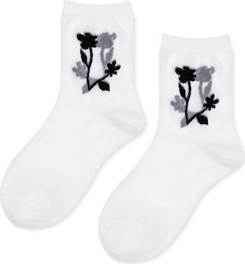 Opaque blooms give a shadowy look to these quarter socks that are perfectly sheer.