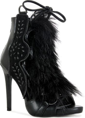 Tonal whipstitching and faux-fur accents make this open-toe bootie the perfect way to add an extra touch of personality to your look.