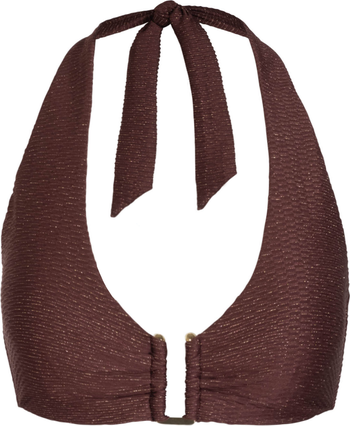 The Shana Top is our best-selling style for fuller busts, reimagined with a modern twist. Designed to provide lift and support, this top is crafted from eco-friendly fabric with SPF50+ protection. A subtle hidden gold "U" trim adds a touch of understated elegance, making it perfect for every getaway. With halterneck straps, adjustable back ties, and supportive side boning, the Shana Top offers a customizable fit that keeps you comfortable and confident all day. Pair it with the matching swim bottom for a chic and polished look.
