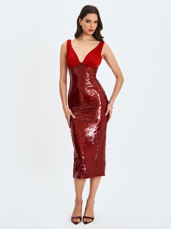Shanelle Sequin Plunging Midi Dress