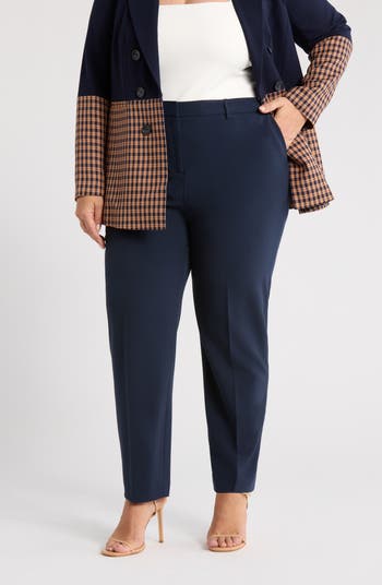 A solid and versatile hue brings a refined appearance to these straight-leg pants enhanced with stretch and expertly tailored to elevate both in-office and off-duty looks.