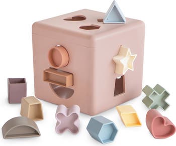 This shape sorting box, made in Denmark, sets the stage for highly engaged play with endless opportunities for hands-on-learning. Featuring 12 shapes in soft colors, children will expand their fine motor skills as they match shapes to their paired cutouts.