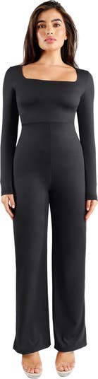 Elevate your style with the Square Neck Wide-Leg Long Sleeve Shapewear Jumpsuit