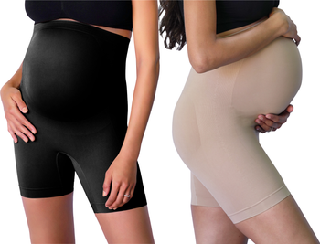 An ultra-comfortable smoothing layer to wear while you're expecting, these anti-chafe, belly-support maternity shorts are made with a super-stretch, seamless fabric that's buttery soft.