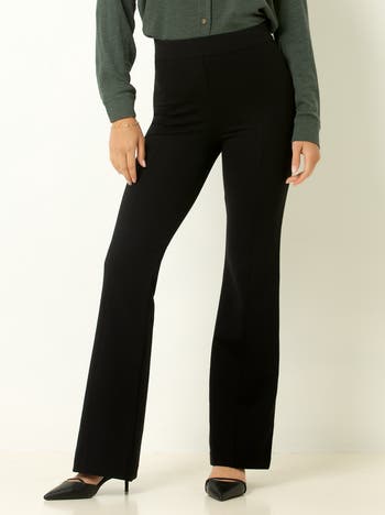 The Shaping High Rise Flare Pant features a supportive ponte knit fabric with gentle stretch for comfort and shape retention. Its high-rise waistband offers a secure fit and core control for a smooth silhouette. With a clean front and flare leg, it combines tailored style with everyday comfort.