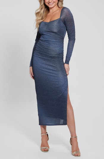 Sharae Shimmer Long Sleeve Body-Con Maxi Dress