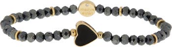 An enamel heart pendant glows at the center of this stack-ready stretch bracelet lined with faceted beads.