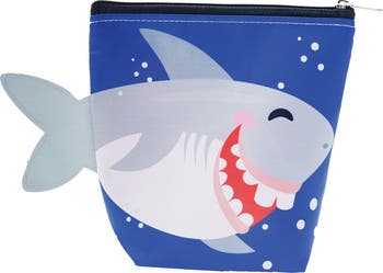 Make snack time a little more fun with this illustrated shark snack bag. The cobalt blue exterior features a bold, smiling shark graphic printed across the front face, complete with a three-dimensional fabric tail fin appliqué on the side that adds a sculptural, character-driven detail beyond what a standard printed bag offers. The zip-top closure with a zinc alloy zipper pull seals the bag securely for airtight storage, keeping snacks and small food items fresh on the go. The construction blend of 85% polyester and 10% nylon delivers a durable, flexible exterior that holds up through repeated use and packing, whether the bag is heading to the beach, a pool day, a picnic, or tucked into a backpack for a day out. At approximately 8.4" x 6" x 2", there is enough interior room for a solid serving of snacks while the overall footprint stays compact and packable. Hand wash only to preserve the printed graphic and appliqué detail. The shark design and practical zip closure also make this bag a fun and functional gift option for anyone who loves ocean-inspired accessories.