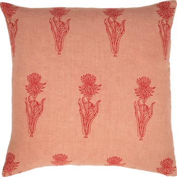 Coral and Dusty Pink print on a Sand base. Hand printed on Natural Linen. 20″ x 20″ Decorative Pillow Cover. Hidden zipper. Insert not included. Made in India.