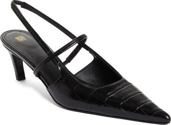 A sharp, pointy toe and slender slingback strap bring the label's Swedish sensibility to sophisticated pump crafted from croc-embossed leather.