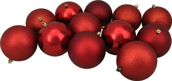 This special club pack will allow you to build your collection quickly and decorate with more possibilities. Shatterproof ornaments combine the beauty and luster of real glass with the unbreakable practicality of plastic. Product Features: 12-piece set Color: red hot Comes in 4 finishes: shiny, matte, glitter drenched and holographic sequin glitter Balls are equipped with gold ornament caps Fully dimensional shatterproof ornaments Ornaments come ready-to-hang on gold cords Dimensions: 4" (100mm) diameter Material(s): plastic/glitter
