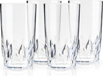 Designed for carefree sipping, these faceted highball glasses are crafted from high-quality clear acrylic. With cut-crystal details and a smooth rim, these shatterproof tumblers are worthy of your finest spirits.