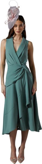 This elegant Shawl Collar Ruffle Hem Midi Dress offers a flattering silhouette with a touch of sophistication, perfect for all your special occasions.