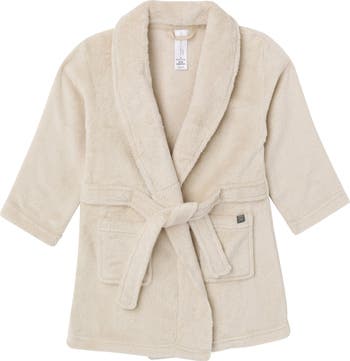 Wrap your little one in the cozy comfort of our shawl collar robe. Made from soft poly plush, this robe is perfect for indulging in post-bath cuddles or lounging on lazy weekends. The secure belt tie ensures a secure fit, while two small front pockets provide a cute and practical touch. Our essentials have been independently certified with STANDARD 100 by OEKO-TEX® so that you don’t have to worry about harmful substances in your little one's wardrobe. Pack includes one robe.
