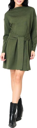 An attached sash cinches the waist of a simple sweater dress knit with a graceful boatneck.