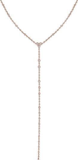 This 18-karat rose-gold Y-necklace lined with bezel-set round diamonds makes a timeless and breathtaking accessory.