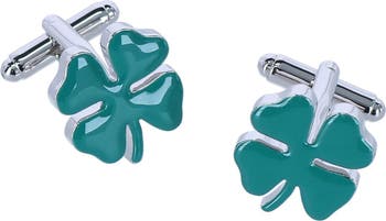 - Novelty cufflinks featuring the luck charm of the green shamrock