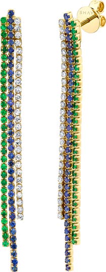 A fringe of garnets, sapphires and diamonds beautifully cascades down these breathtaking earrings, almost like colorful rain droplets.