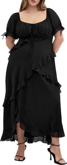 Tiered ruffles dial up the drama of a short-sleeve maxi dress that exemplifies everyday elegance.