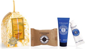 How to use: Massage L'Occitane Gentle Soap onto wet skin. Rinse thoroughly. Warm a small amount of the rich body cream in your hands. Massage your body with the cream in circular motions. After showering or bathing, apply all over the body whenever skin feels dry or tight. Apply the hand cream at least twice a day. Apply a generous amount of cream onto the hands then gently massage into the palms, back of the hands, nails and cuticles. Use the trio when necessary.
