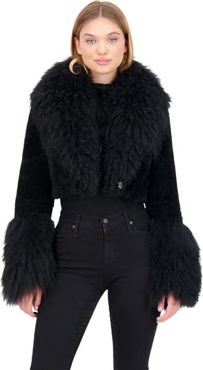 Make a stunning statement with the Select Genuine Shearling Bolero, featuring a luxurious Genuine Shearling collar and cuffs. This elegant piece blends soft cashmere with bold textures for refined warmth and standout style.