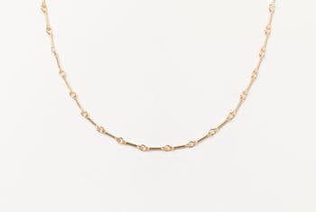 Not your average chain. The Alice features an alternating bar and round link pattern that catches light as it moves — more visual interest than a simple chain, without competing with anything you layer it with. Wear it alone or use it as the base of a layered neck. It's the chain people ask about. Handcrafted in 14k gold fill. Adjustable length. Lobster clasp.
