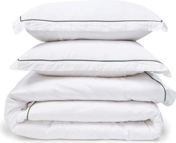 Contrast piping lends a pop of color to this elegant duvet-and-shams set made of a naturally breathable and hypoallergenic sateen.
