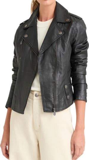 Sheep Leather Biker Jacket With Epaulets