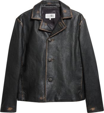 Seen on the spring ’26 runway, this sheepskin leather jacket brings instant character with a built-in patina that nods to the house’s signature DIY aesthetic. With pockets hidden in the seams and wrapped buttons that blend into the front, the look stays sharp and minimal, anchored by the richness of the leather.