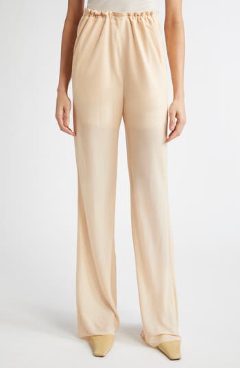 From Satoshi Kuwata's spring '25 collection built around the challenge of using both sides of the fabric, these flowing, extralong pants with an elasticized waist are made with two layers of silky, sheer fabric to give them some opacity.