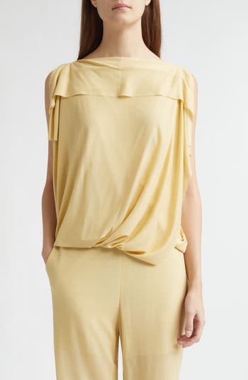Sheer layers create drapey dimension and a flowy silhouette for a structure-free top.