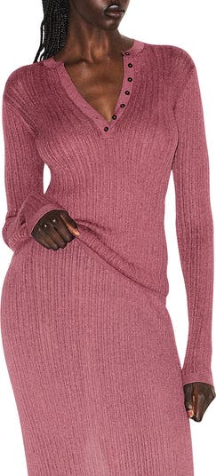 Ultrasexy and sheer in the brand's new textured knit fabric, this long-sleeve henley features a crewneckline and gleaming metal buttons.