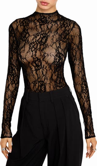 Feel your most stunning in this sheer lace bodysuit with a thong back that disappears under clothes.
