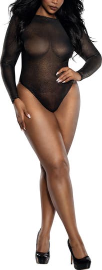 Let your natural assets shine in this stretchy and sheer bodysuit covered in sparkles.