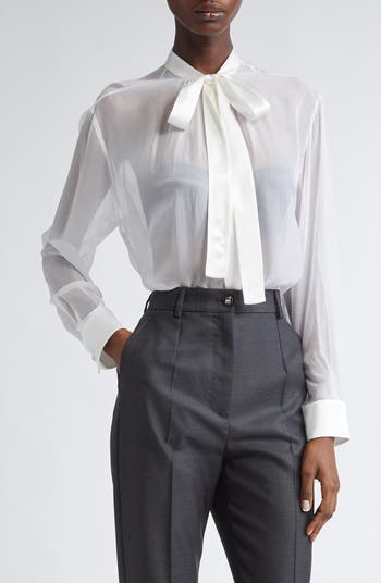 Sheer silk chiffon and glossy satin make a delightfully tactile duo in this button-up shirt from the fashion house's Black Sicily Collection that celebrates the enduring allure of ultraluxe fabrics and Italian design.