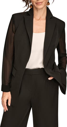 Sheer chiffon sleeves frame this structured blazer made with a layer-perfect open front.