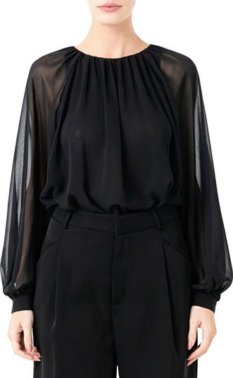 Achieve a dreamy blouson silhouette that's always perfectly in place in this genius bodysuit set with sheer sleeves.
